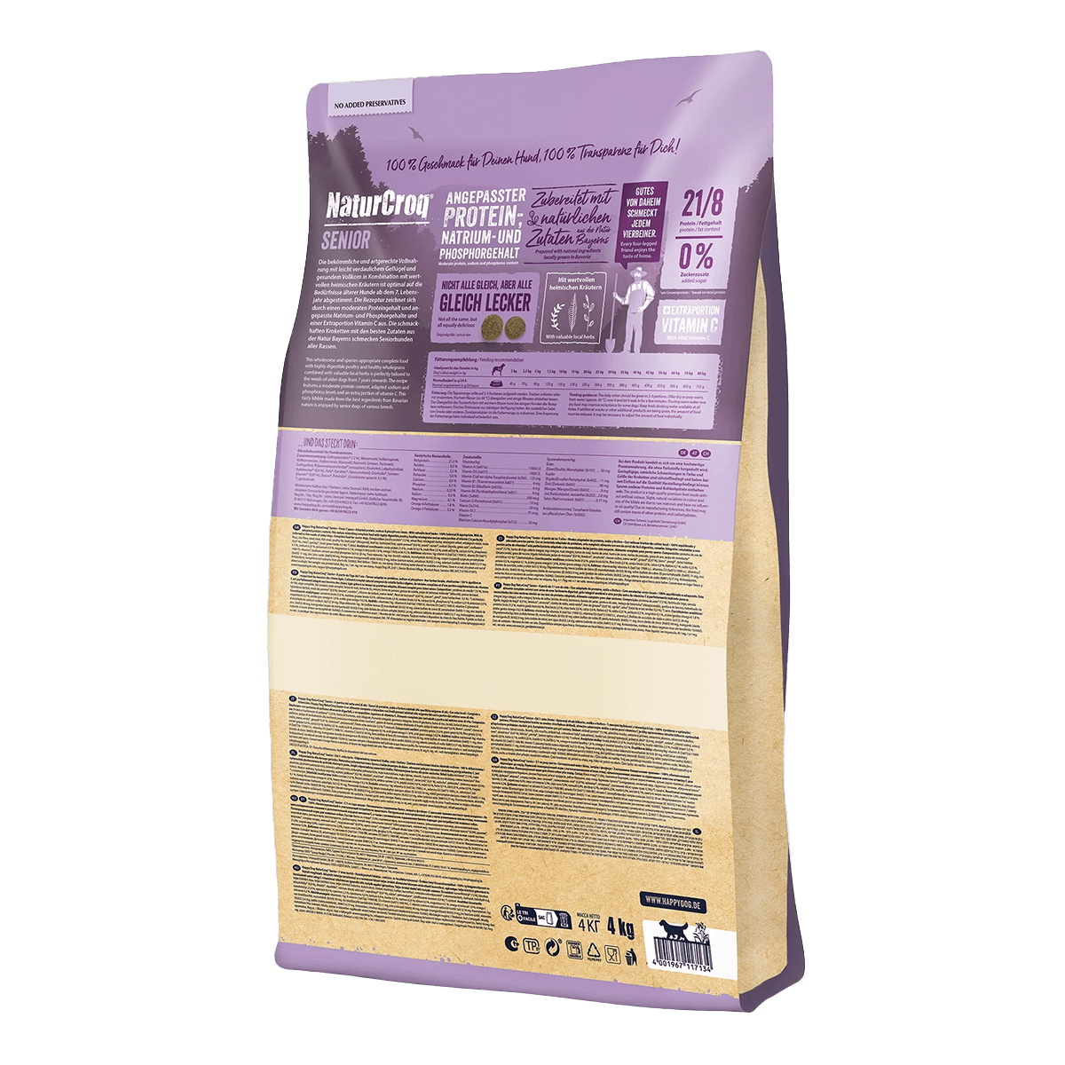 proteína de aves* (12 %), farinha de trigo, cevada integral, trigo integral, milho integral, farinha de milho, farinha de arroz, torresmos, farinha de peixe, gordura de aves, melaço de beterraba* (desaçucarado), gordura de bovino, hidrolisado de fígado, bagaço de maçã* (0,9 %), levedura*, cenouras*, cloreto de sódio, aveia verde*, óleo de girassol* (0,07 %), agrião*, salsa* (total de ervas verdes: 0,3 %); *) seco.