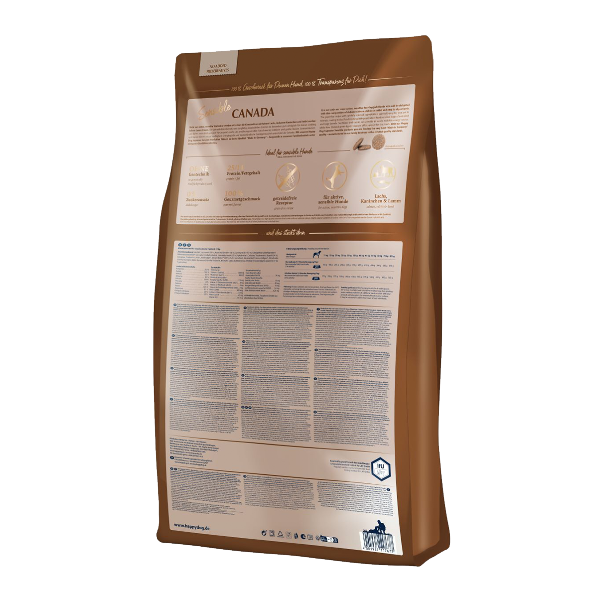 batata*, farinha de salmão (10 %), proteína de coelho* (10 %), proteína de carne de borrego* (10 %), gordura de aves de capoeira, proteína de batata*, melaço de beterraba* (desaçucarado), hidrolisado de fígado, óleo de girassol (1,5 %), bagaço de maçã*, celulose, ovo inteiro em pó, óleo de colza (0,4 %), sementes de linhaça, arandos*, levedura*, algas marinhas*, polpa de mexilhão* (0,1 %), levedura* (extrato), cardo leiteiro, Yucca schidigera*, alcachofra, dente-de-leão, gengibre, bétula, urtiga, camomila, coentros, alecrim, sálvia, raiz de alcaçuz, tomilho (total de ervas secas 0,14 %); *) seco.