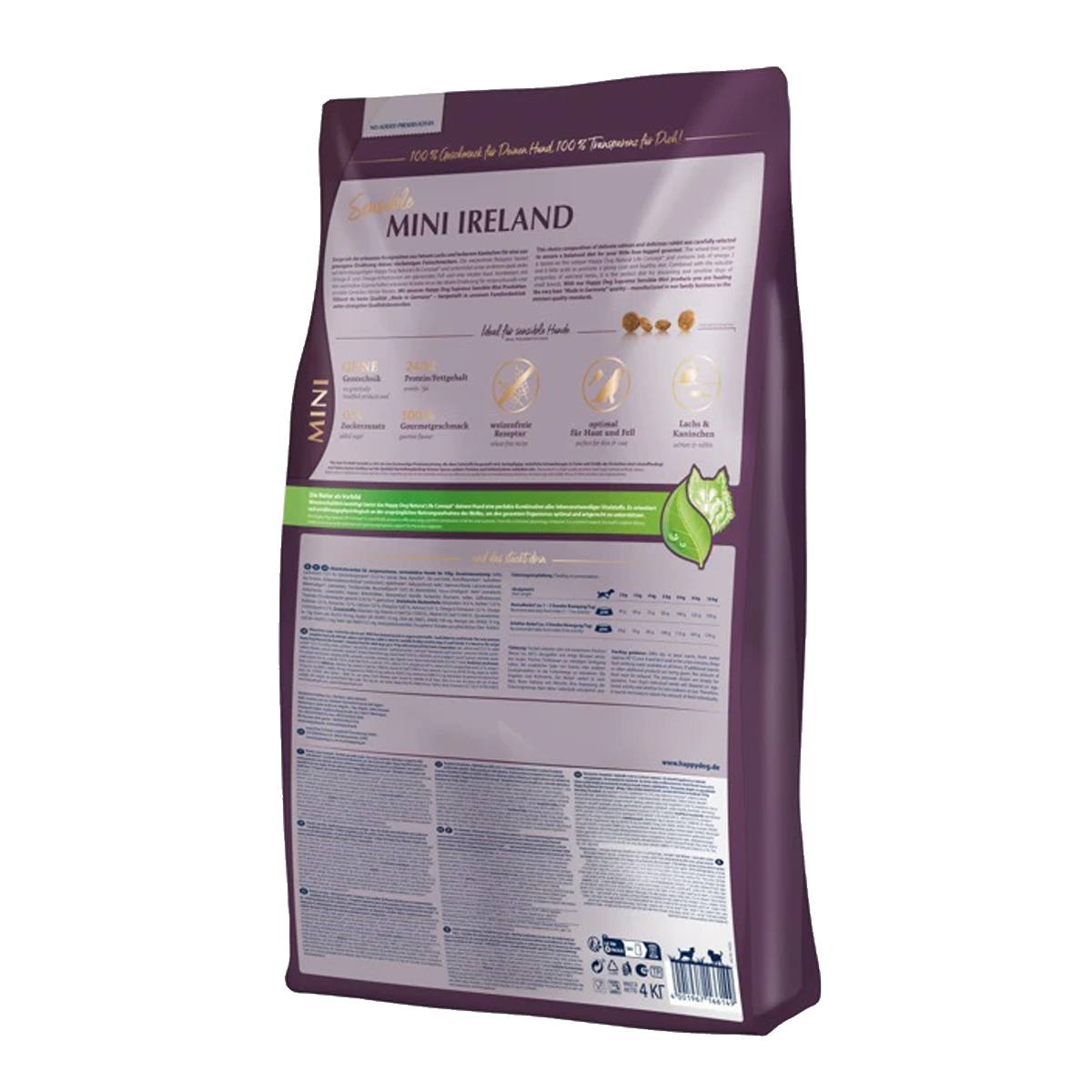 aveia, farinha de salmão (12,5 %), proteína de coelho* (12,5 %), cevada, milho, batata*, óleos e gorduras, proteína de batata*, proteína hidrolisada, melaço de beterraba* (desaçucarado), bagaço de maçã*, cloreto de potássio, leveduras*, cloreto de sódio, carbonato de cálcio, algas marinhas*, sementes de linhaça, ovo inteiro em pó, polpa de mexilhão* (0,05 %), cardo de leite, yucca schidigera*, leveduras* (extracto), alcachofra, dente-de-leão, gengibre, folhas de bétulas, urtiga, camomila, coentros, alecrim, sálvia, raiz de alcaçuz, tomilho (total de ervas secas: 0,16 %); *) seca/o/s.